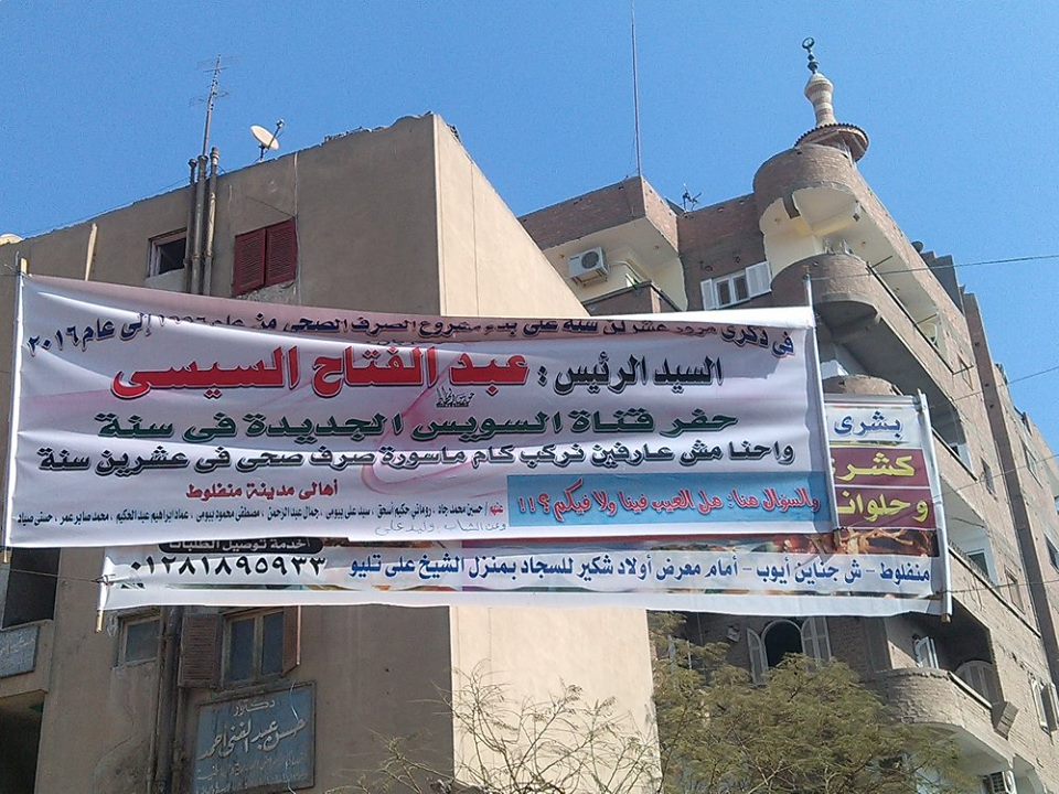 وأضافت اللافتة " السؤال هنا : هل العيب فينا ولا فيكم؟!" وتزيلت اللافتة بإمضاء أهالي مدينة منفلوط .