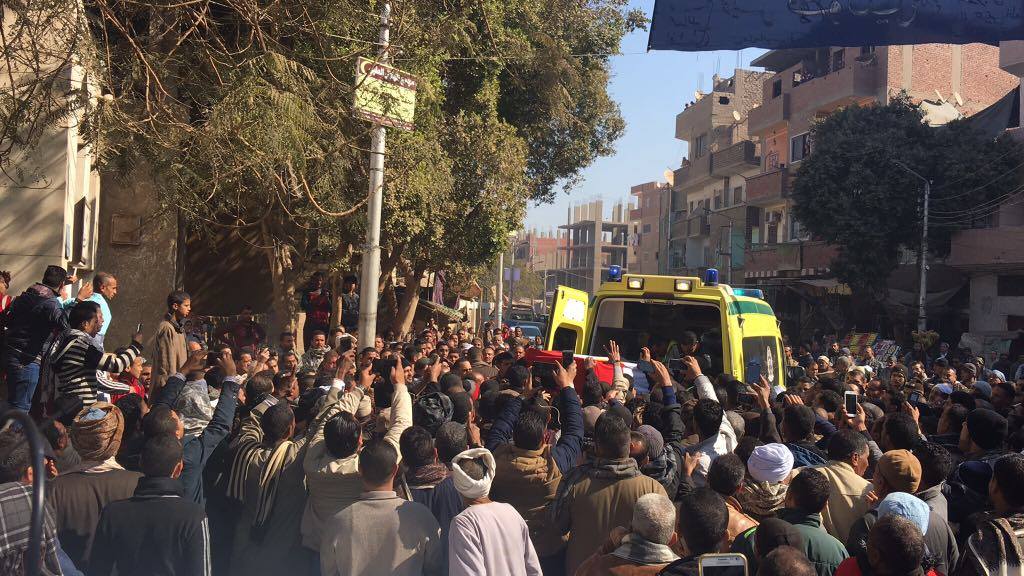 صور.. الآلاف بساحل سليم بأسيوط يشيعون جثمان شهيد الإرهاب بسيناء