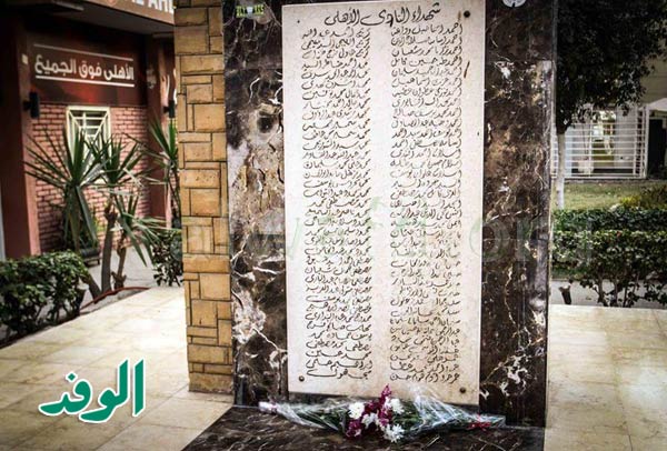 وقام أهالي الشهداء بقراءة الفاتحة أمام النصب التذكاري الذي شيد داخل مقر النادي بالجزيرة، لتخليد ذكرى الشهداء.