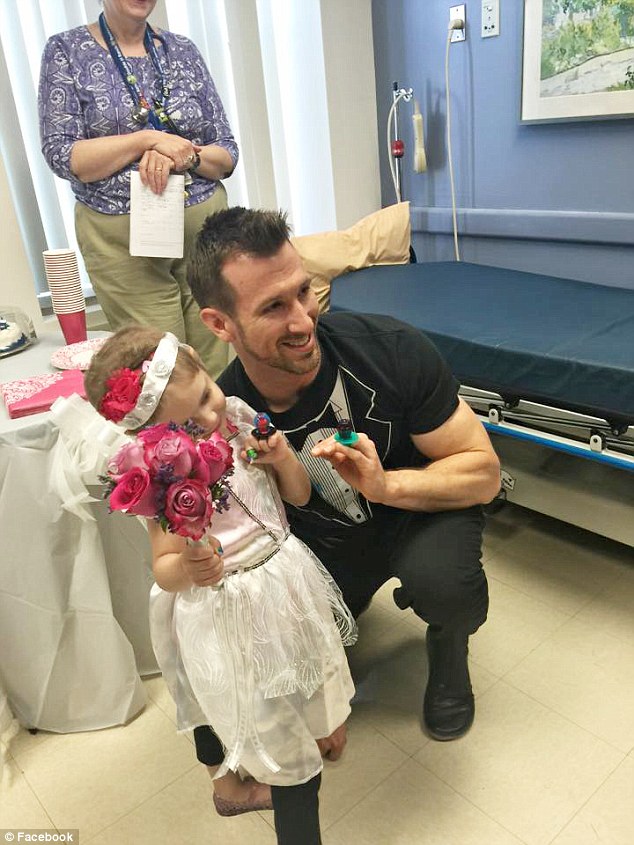 فى مستشفى مركز ألبانى الطبى بمدينة نيويورك، احتفل الفريق الطبى المعالج للطفلة "أبى"، 4 سنوات، والمريضة بسرطان الدم بزواجها على ممرضها المفضل الذي يُدعى "مات"، بحسب صحيفة "ديلى ميل" البريطانية.