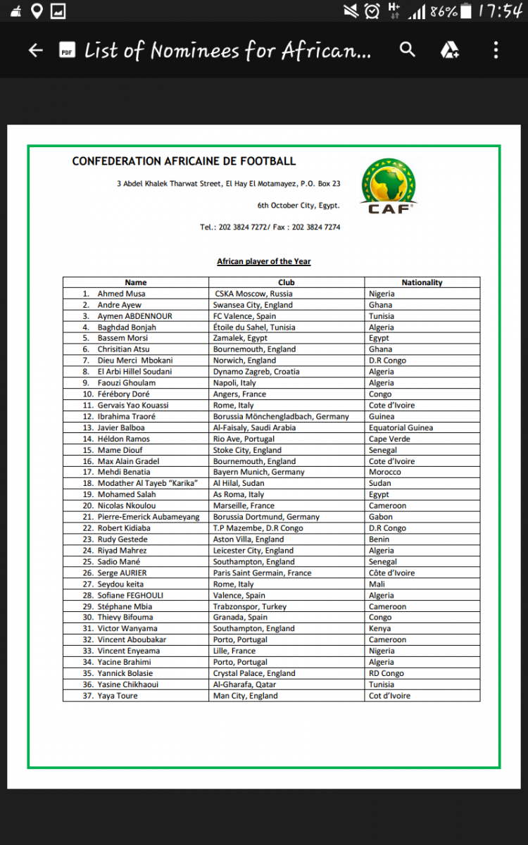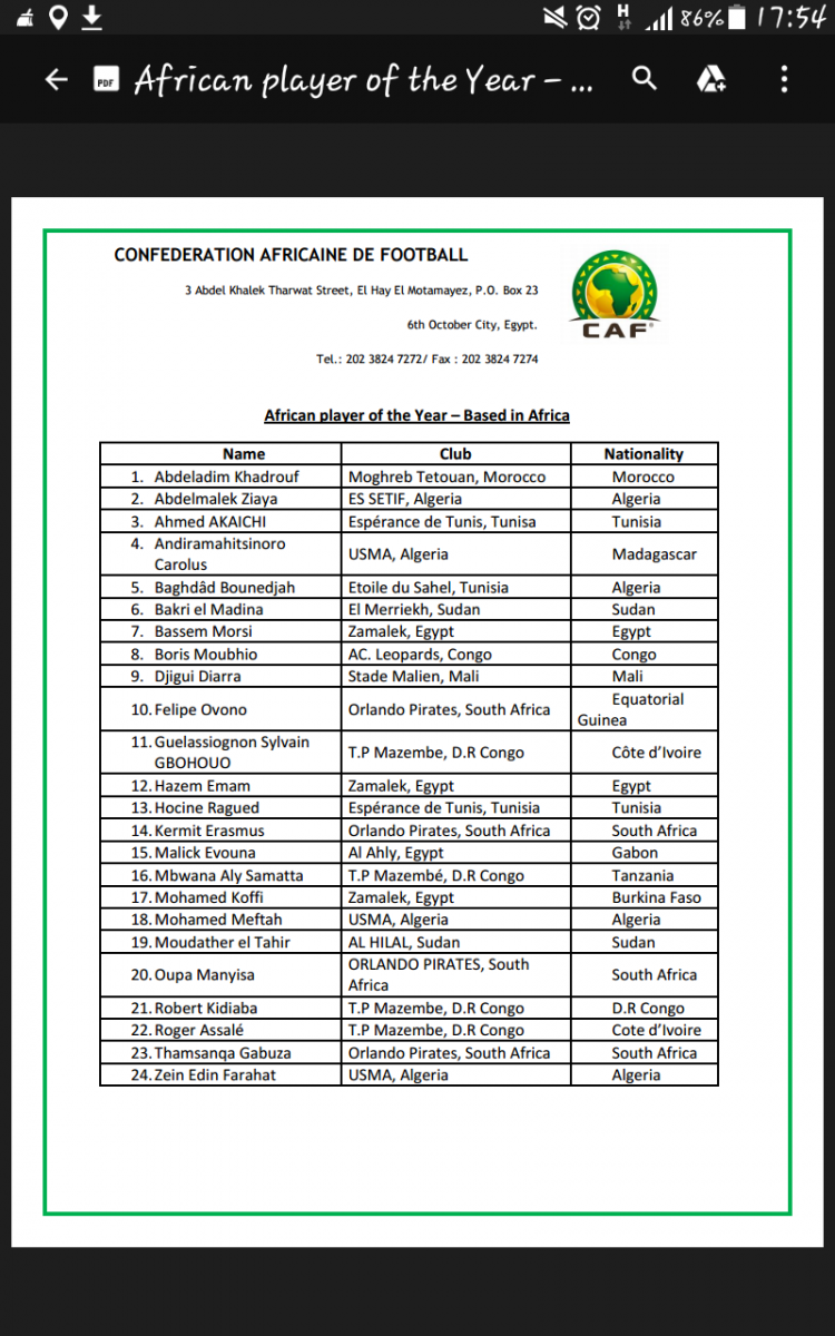 وأعلن الاتحاد الأفريقي لكرة القدم "كاف"، عن أسماء اللاعبين المرشحين، وشهدت القائمة تواجد بغداد بونجاح مهاجم النجم الساحلي.