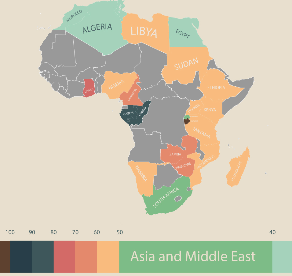وقد تم إستبعاد دول كثيرة وسط وغرب أفريقيا بسبب عدم توافر البيانات.