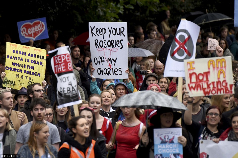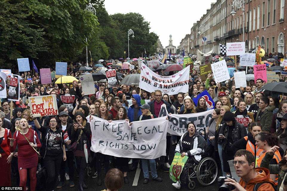 تظاهر آلالاف من النساء في شوارع دبلن، وانضم المغتربون الأيرلنديون إلى المظاهرة، للضغط على الحكومة الأيرلندية لإجراء استفتاء لإلغاء القوانين المقيدة للإجهاض.