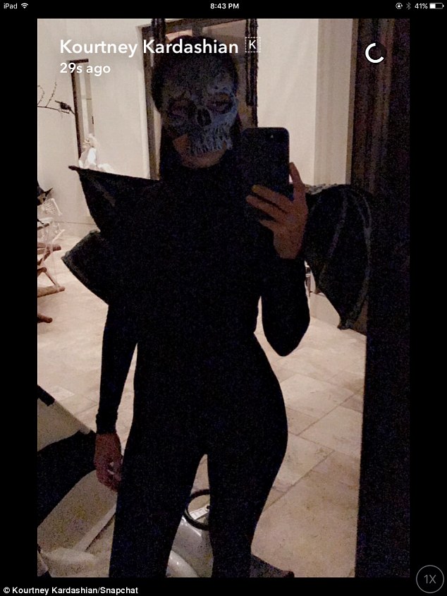 وتنكرت الشقيقة الثالثة كورتني كارداشيان بالزي الأسود الداكن والأقنعة المخيفة، ولوحظ غياب
