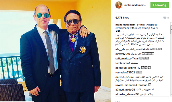 نشر الفنان محمد إمام صورة لوالده الزعيم عادل إمام وابنه الكبير رامي، إمام أثناء حصول الزعيم على الوسام الوطني للاستحقاق بتونس، وذلك عبر حسابه الشخصي بموقع التواصل الاجتماعي"انستجرام" ولاقت الصورة تفاعل الجمهور.