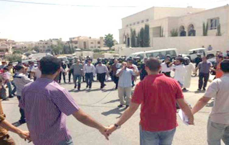 أكد مصدر فى وزارة الداخلية، أنه تمت إحالة المعتدين إلى القضاء لاتخاذ الإجراءات القانونية بحقهم حسب الأصول، مشددا على أن الدولة الأردنية بجميع أجهزتها ومؤسساتها لا تسمح بتجاوز القانون أو التطاول عليه من أى جهة كانت، كونه المظلة التى تنطوى تحتها ويحتمى بها كل من يعيش على أراضى المملكة الأردنية الهاشمية.
