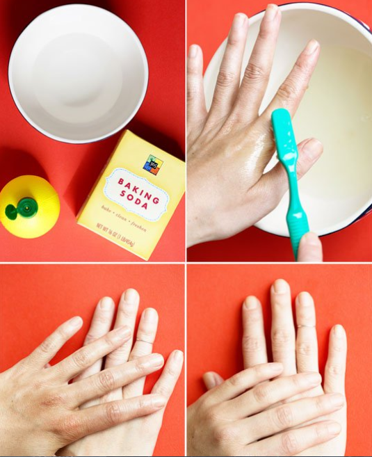 يمكنك استخدام فرشاة الاسنان للتخلص من البقع الداكنة في الأيدي، لذا يمكنك أن تقومي بتنظيف يديكي جيدا باستخدام مسحوق صودا الخبز وقليل من عصير الليمون، وهذا يُعد بديل مثالي يجنبك من التردد على صالونات التجميل وإهدار الكثير من الأموال.