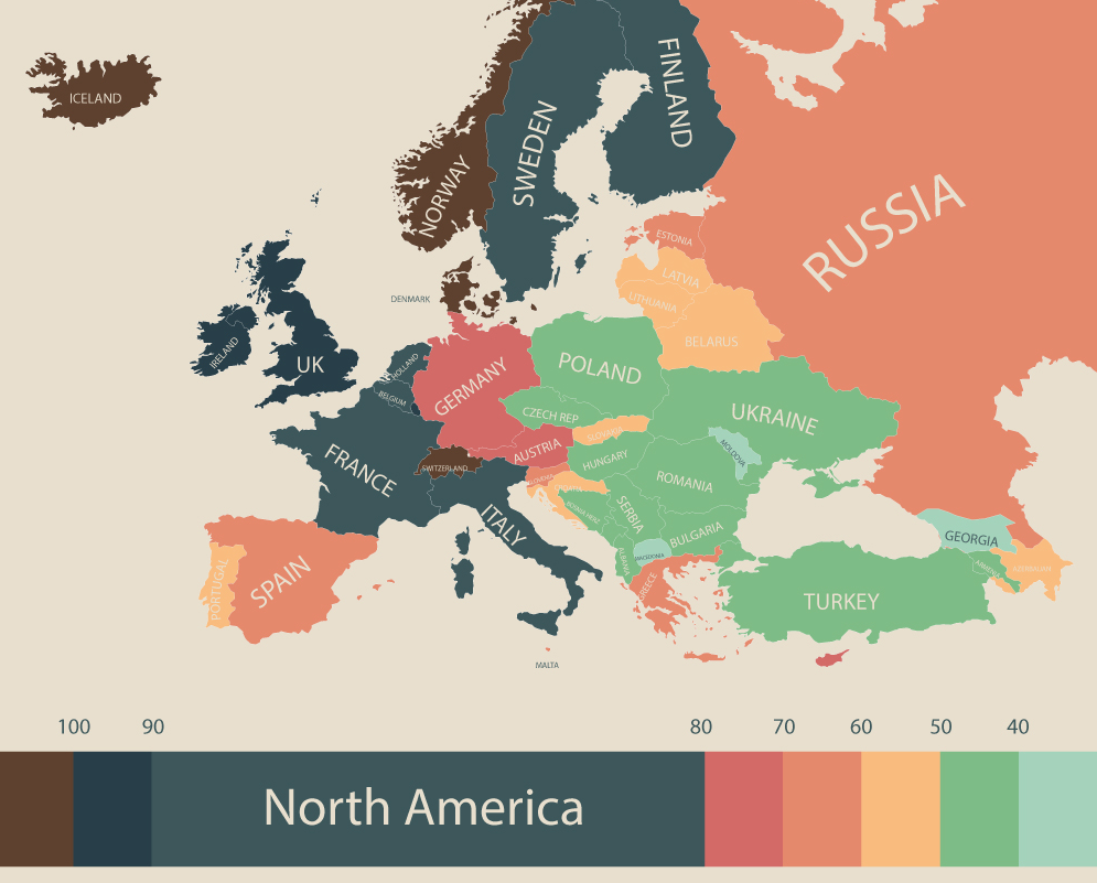 وينصح التقرير من يرغب في الانتقال إلى أوروبا أن يتوجه إلي دول شرق أوروبا مثل: مولدوفا، مقدونيا، جورجيا، بولندا، جمهورية التشيك وبلغاريا.