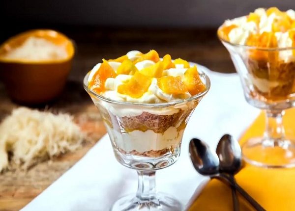 -اخلطي الكريمة مع القشطة وأضيفي طبقة على المانجو