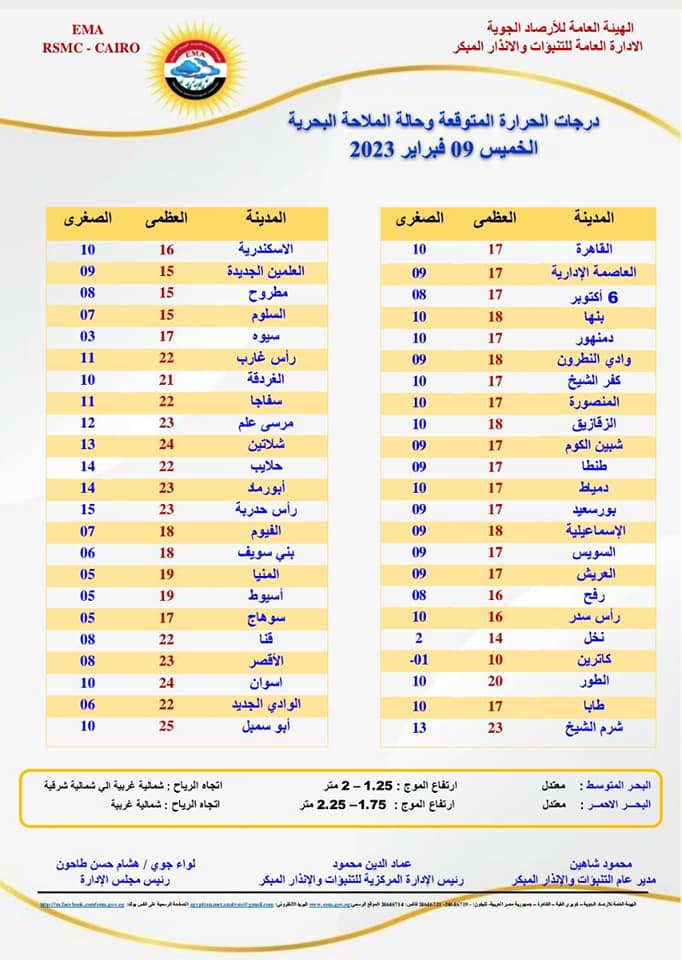 سوهاج العظمى 23 درجة والصغرى 07 درجات.