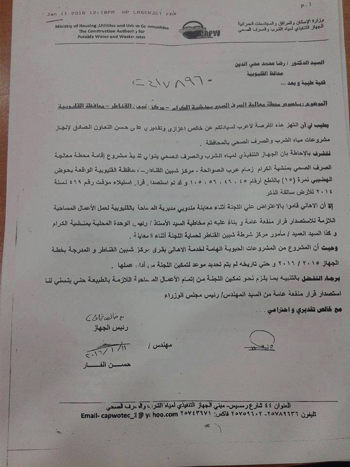 استغاث أهالى قرية منشأة الكرام التابعة لمركز شبين القناطر بمحافظة القليوبية، مشاكل الصرف الصحي بالقرية، التى تهدد أربعين ألف نسمة من الأهالى بالتشرد والموت.