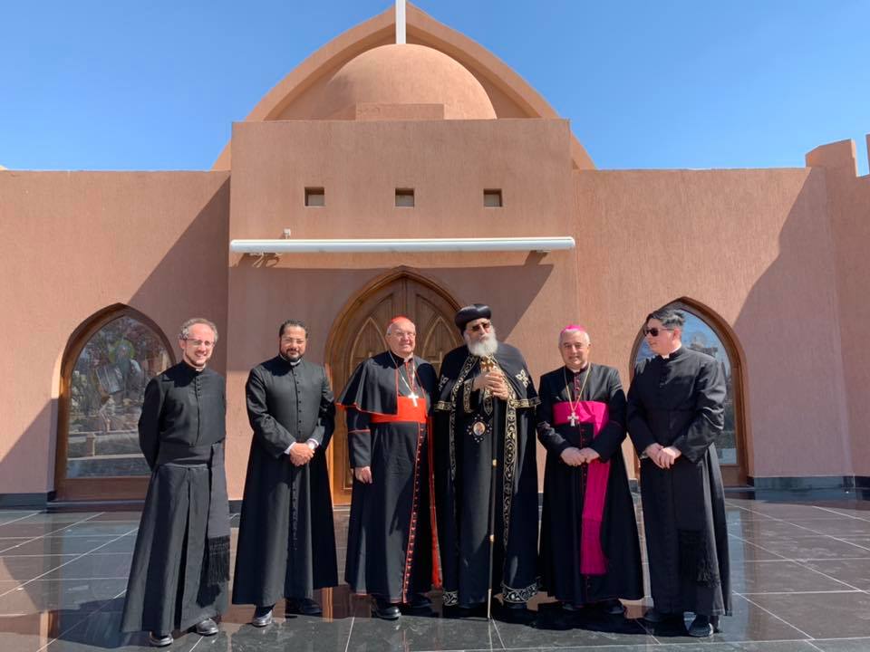 توجه غبطة الكاردينال ليوناردو ساندري رئيس مجمع الكنائس الشرقية,إلى دير الأنبا بيشوي وادي النطرون لعقد لقاء مع قداسة البابا تواضروس الثاني بابا الاسكندرية بطريرك الكرازة المرقسية، اليوم السبت، في إطار جولتة الرعوية الحالية بمصر للمشاركة في مراسم احتفال الكنيسة القبطية الكاثوليكية بالمئوية الثامنة عن لقاء القديس فرنسيس الأسيزى والملك الكامل الأيوبى.