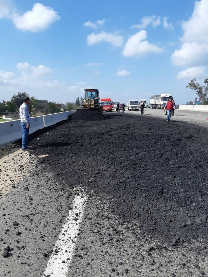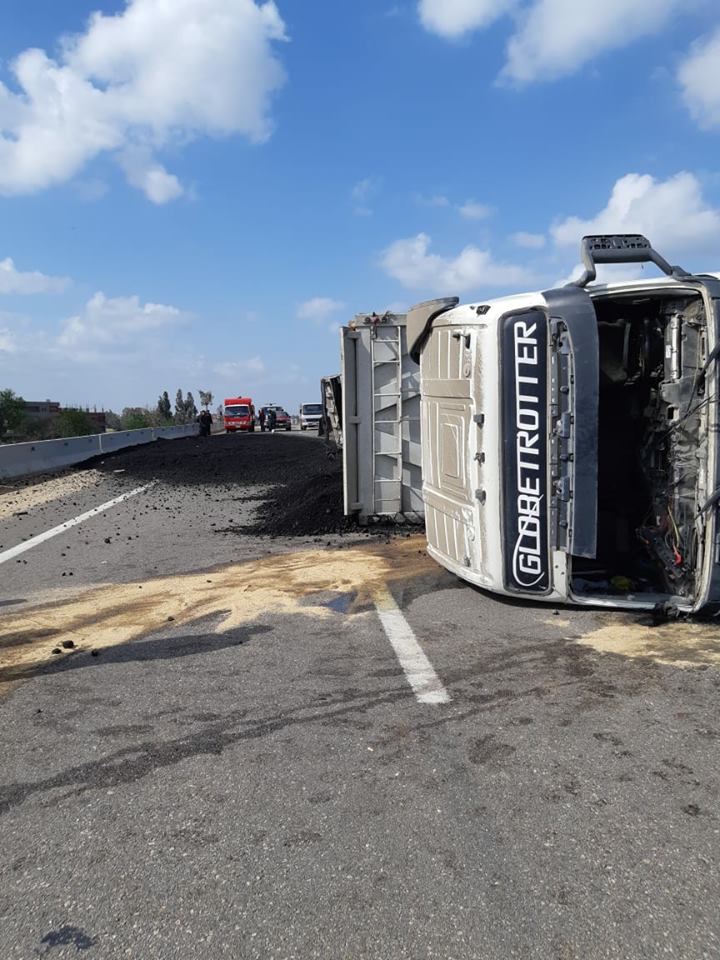 وتبين أن السيارة محملة بنحو 40 طن فحم أسفلتي، وكانت قادمة من السادات في طريقها إلى السويس. على