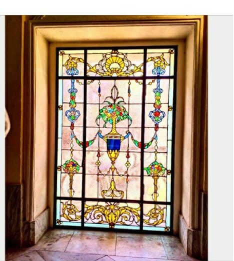 "الشبابيك".. نرى أن شبابيك القصر عبارة عن لوحة فنية جميلة تحتوى على ألوان عدة، تعطى حيويه، ذات طراز نادر صنعت من الزجاج المعشق بالرصاص، حروفها مطلية باللون الذهبى، الذى يشع منه الشمس، وهى مغلقة وكأنها مصباح.