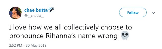 وبعد مشاهدة مقطع الفيديو المسبب للاضطراب، قال أحد مستخدمي تويتر: "لذا ، فإننا نعلن اسم ريهانا خطأ طوال الوقت".