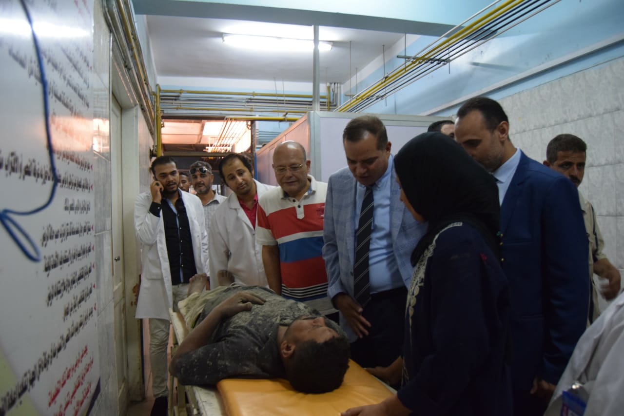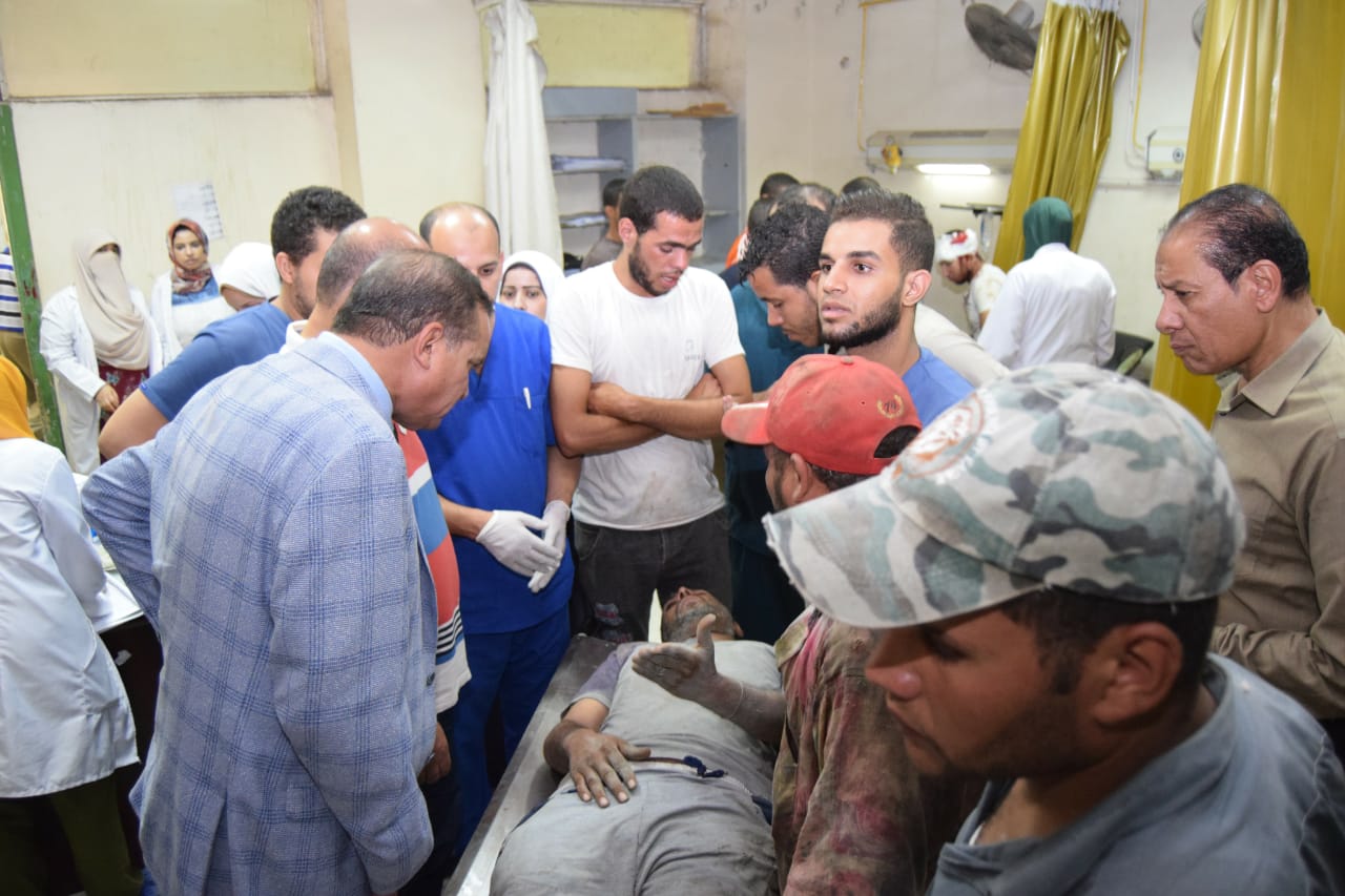 نتج عن ذلك إصابة 5 عمال تم نقل حالتين منهم إلى المستشفى الجامعي، و3 حالات إلى مستشفي سوهاج العام، وتم استقبالهم بالطوارئ واجراء الفحوصات والاشاعات اللازمة، والتي اثبتت اصابتهم ببعض الكدمات والتسلخات المتفرقة بالجسم ، وعلى أثرها تم عمل الرعاية الكاملة والعلاج، حتي تم خروجهم جميعا، ما عدا حالة اثبتت الاشاعات وجود "شعر" في عظمة قصبة الطرف الاسفل، مما يستلزم وجودها تحت الرعاية لمدة 24 ساعة .