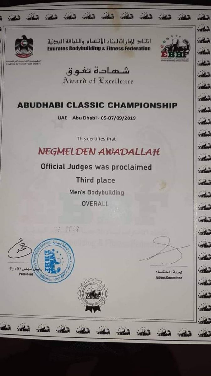 المقامة بجزيرة ياس الفتره ٥ ل ٧ سبتمبر ٢٠١٩ حصلت علي المركز الأول كمال اجسام ميزان ٩٠ كيلو