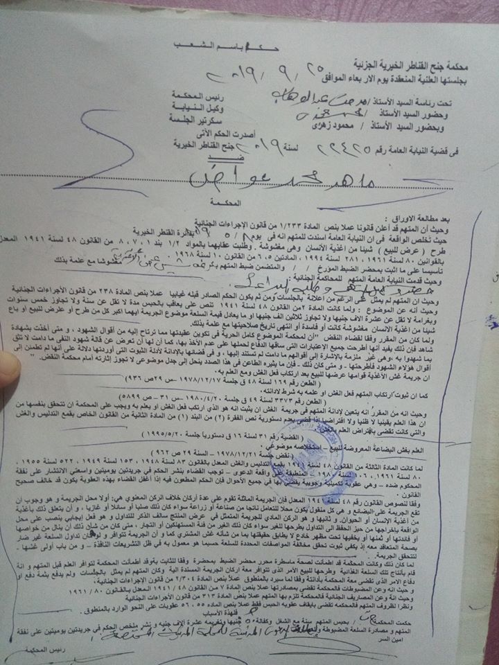 قضت محكمة جنح القناطر الخيرية بحبس المسئول عن إدارة شركة كوكاكولا، ماهر محمد عواض، سنة مع الشغل والنفاذ، وغرامة 10 آلاف جنيه؛ لاتهامه ببيع منتجات غير صالحة للاستهلاك الآدمي.