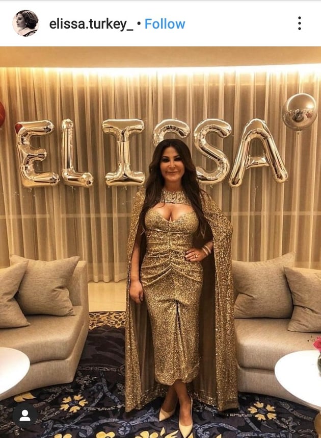 واعتمدت إليسا، على تسريحة شعر تقليدية ووضعت مكياجا ناعما اتكز على الالوان الترابية التى تتناسب مع لون بشرتها.