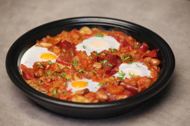 دلعي سفرتك بأحلى فطار.. طريقة عمل طاجن فول بالبيض و البسطرمة