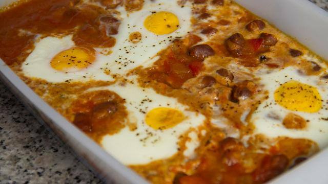 طريقة عمل طاجن فول بالبيض و البسطرمة