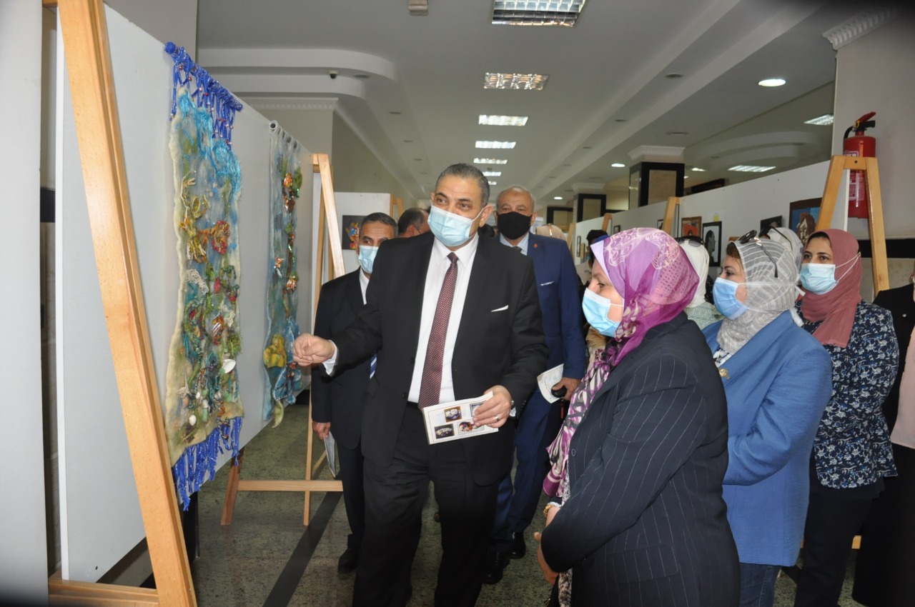 صور.. رئيس جامعة كفرالشيخ يفتتح 5 معارض فنية لطلاب النوعية