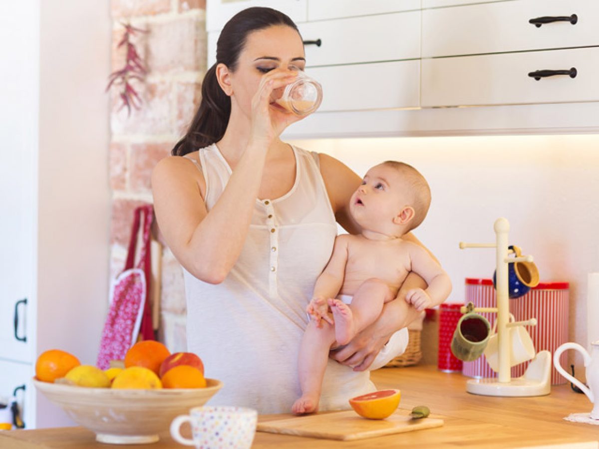 7- يجب الالتزام بشرب كمية كافية من المياه، حيث إنها تساعد على الشعور بالشبع وتساعد على إدرار اللبن.