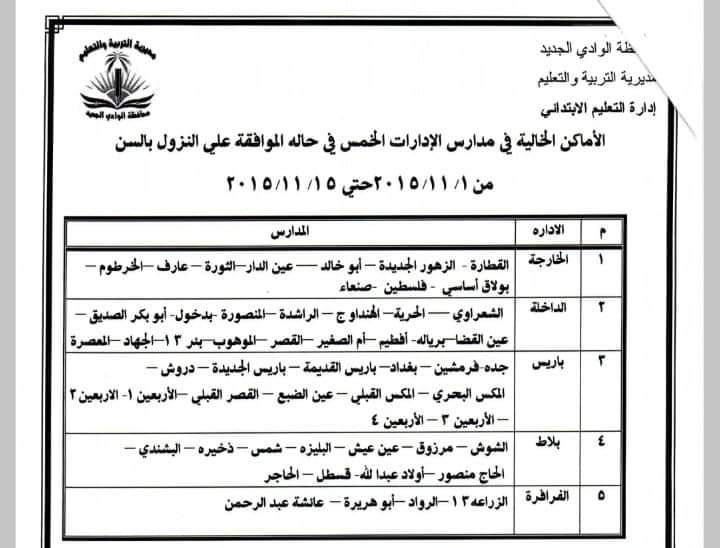 محافظ الوادي الجديد: النزول بسن القبول للصف الأول الابتدائي للعام الدراسي الحالي