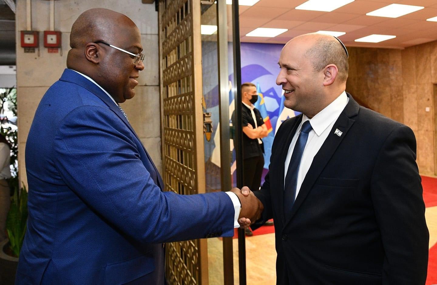 وأشارت الخارجية الإسرائيلية، إلى أن رئيس الوزراء الإسرائيلي، نفتالي بينيت، استقبل، أمس الخميس، فيليكس تشيسيكيدي، رئيس الكونغو الديمقراطية، في مدينة القدس المحتلة.