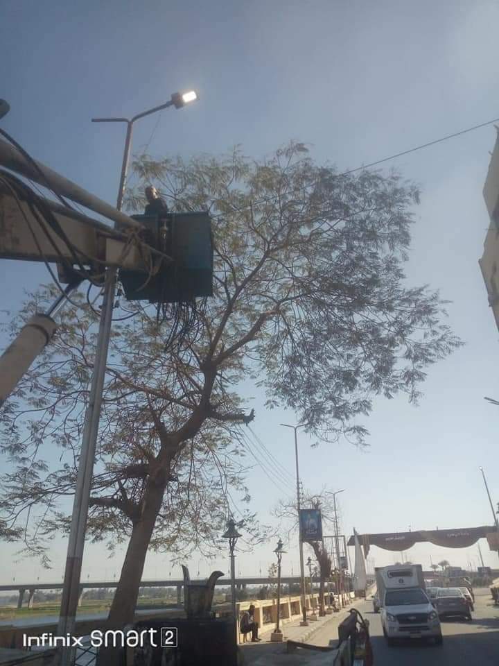 وقال أحمد الشطورى أنه بناء على تعليمات اللواء طارق الفقي محافظ الإقليم بشأن رفع كفاءة الإنارة بالشوارع الرئيسية والفرعية والميادين بنطاق المحافظة تم تنفيذ حملة صيانة شاملة للإنارة
