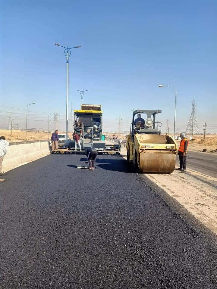 استكمال أعمال الاسفلت بطريق بلبيس العاشر من رمضان