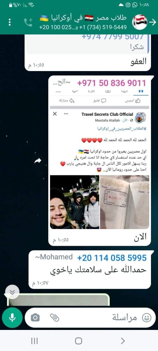 أكد الإتحاد العام للمصريين في الخارج، وصول دفعات من المصريين الفارين فجر السبت من الحرب في أوكرانيا إلى الحدود مع رومانيا، وطالبت السفارة المصرية هناك سرعة التوجه للعاصمة بوخارست من أجل العودة للقاهرة.