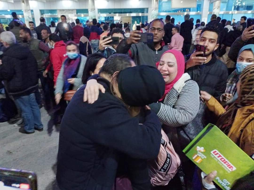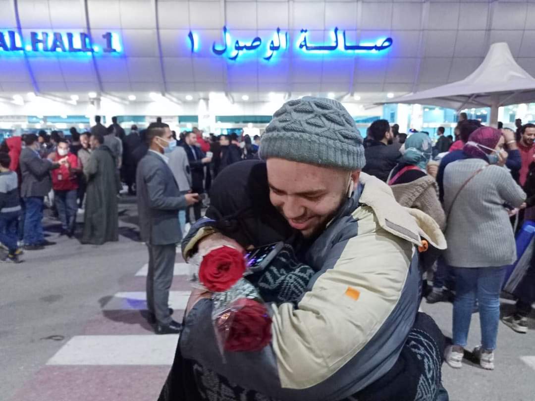 واستقبل أهالي العالقين بأوكرانيا، أولادهم بالورود والأحضان، وسط فرحة من الجميع وحالة من عدم التصديق بإنقاذ أبنائهم من الغزو الروسي.
