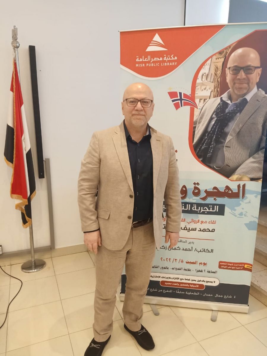 وأشار محمد سيف المفتي، المفكر والروائي القادم من أوسلو بالنرويج، إلى على أن تجربته في السفر والإقامة بدولة النرويج، لم يندم عليها، قائلًا: " لو رجع بيا الزمن إلى الوراء سأكررها مرة أخرى، فدولة النرويج أعطتني الكثير ولها فضل كبير في نجاحي".