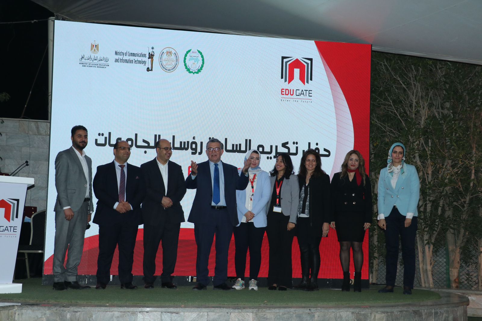 وفي ختام فعاليات اليوم الأول للملتقى، كرم الدكتور علي شمس الدين رئيس ملتقى "إيديوجيت"، الأستاذ الدكتور محمد لطفي، رئيس الجامعة البريطانية لما قامت به الجامعة من جهود تنموية في قطاع التعليم العالي، حيث حصلت الجامعة البريطانية في مصر على المركز  الرابع مكرر في مصر، والأول على مستوى الجامعات الخاصة المعتمدة من المجلس الأعلى للجامعات، وفقًا لتصنيف QS البريطاني في الشرق الأوسط وشمال أفريقيا لعام 2021، كما حصلت الجامعة البريطانية في مصر على المركز الأول في الفيزياء في مصر والمرتبة الثانية في المنطقة، والثالثة في أفريقيا، وفقًا لتصنيف "شنجهاي" لعام 2021 للمرة الخامسة على التوالي، فضلًا عن تكريم عدد من رؤساء ومسؤولي الجامعات المصرية المميزة، وأكد رئيس الملتقي، أن هناك جهودًا كبيرة تبذل في مصر لتطوير وتحسين التعليم العالي، والارتقاء بالعملية التعليمية، ومواكبة ما يحدث فى العالم، والتوسع في إتاحة فرص تعليمية متنوعة بالتعليم العالي لخريجي المرحلة الثانوية، بما يساعد هؤلاء على تحديد مستقبلهم بالشكل المناسب.