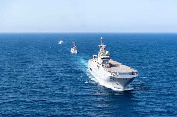 القوات البحرية المصرية والفرنسية تنفذان تدريباً بحرياً عابراً بنطاق قاعدة برنيس البحرية