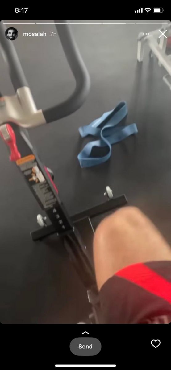 وشارك محمد صلاح مقطع فيديو من أحدث ظهور له بداخل صالة الألعاب الرياضية، وذلك من خلال خاصية القصص المصورة "استوري" عبر حسابه الشخصي بموقع تبادل الصور والفيديوهات "انستجرام".