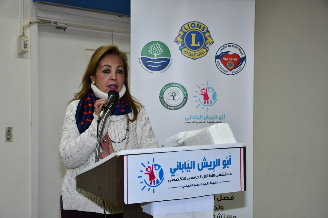 حضر الاحتفال بإطلاق المشروع اجلال بهادر حاكم المنطقة ٣٥٢ ليونز مصر وراجية هاشم رئيس لجنة البيئة والدكتورة رشا جمال مدير مستشفى ابو الريش.