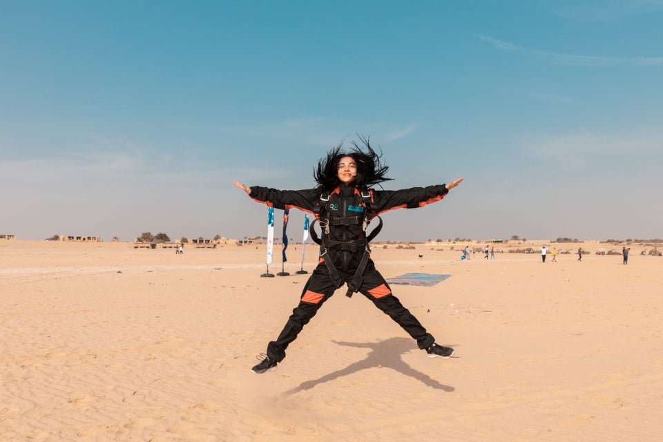 وعما كان يدور في ذهنها أثناء طيرانها في الجو، قالت" ما كنتش بفكر في حاجة كنت مستمتعة بالمنظر من فوق...وكنت عايزه أطلع تاني ونط لأن المنظر حلو أوي من فوق والهوى نقي" وأضافت " أي حد من صحابي بيفكر يطلع يعمل سكاي دايفينج خدوني معاكو عشان عايزه أعمل كدة تاني".