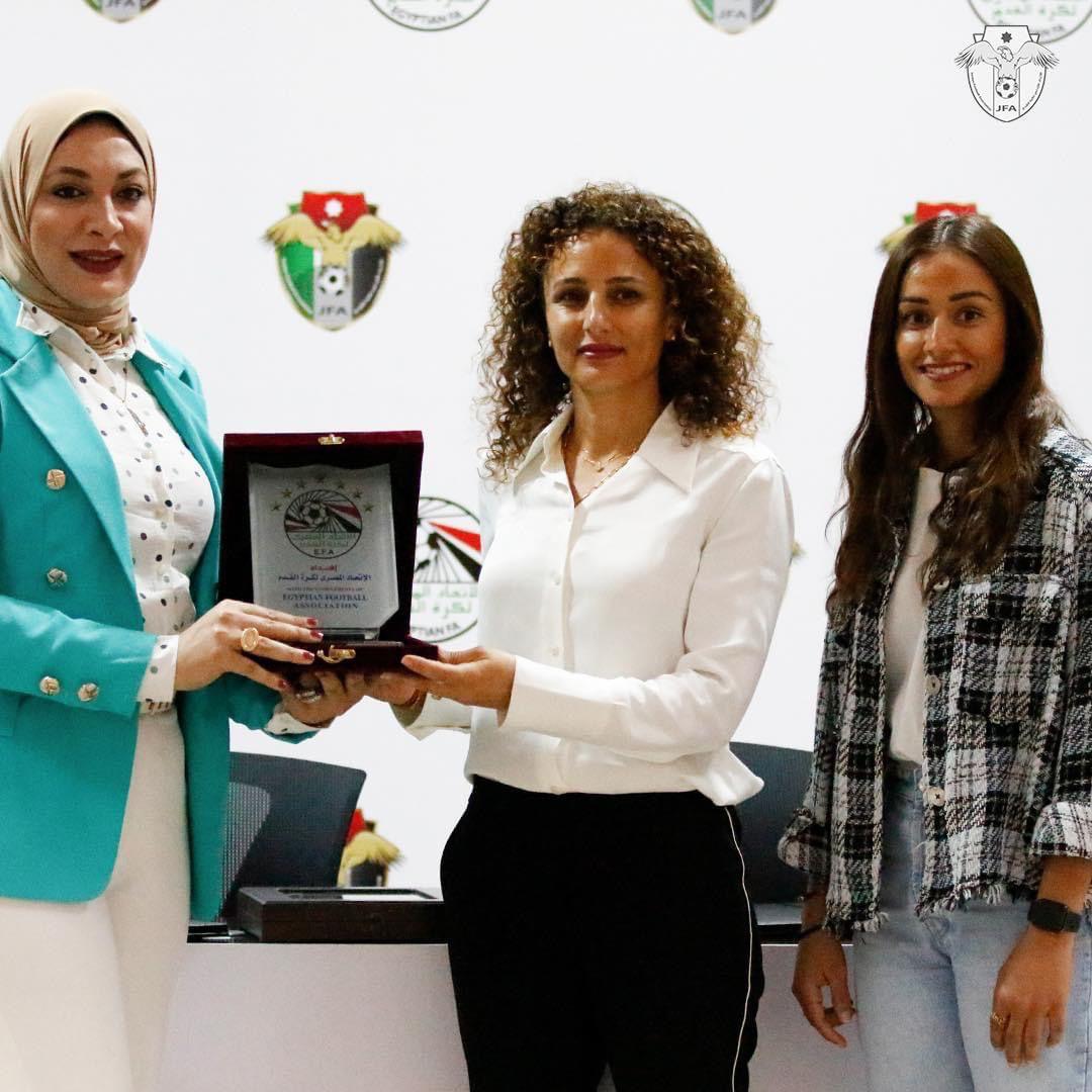 واختتمت :"التعاون بين اتحادي البلدين في مجال الكرة النسائية بتوقيع الاتفاقية اليوم يمثل الامتداد الطبيعي للعلاقة الطيبة بين الاتحادين الشقيقين وكل أمنياتي بالتوفيق لكرة القدم المصرية والأردنية".