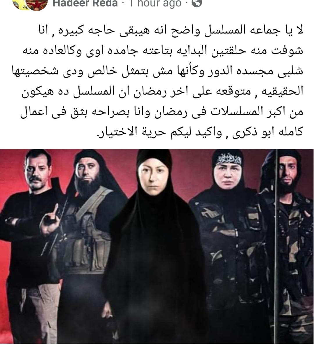الأ أن البعض من رواد السوشيال انتقده بعد نشر الفنانة إلهام شاهين البوستر الترويجي لدورها في المسلسل، حتى أثارت عاصفة من الانتقادات والهجوم الشرس، وصلت إلى حدود الإهانة بحقها، واتُهمت بالإساءة إلى الدين الإسلامي بسبب وضعها شعار التنظيم الإرهابي "داعش" على عصبة رأسها، وفق ما أظهرها "البوستر".