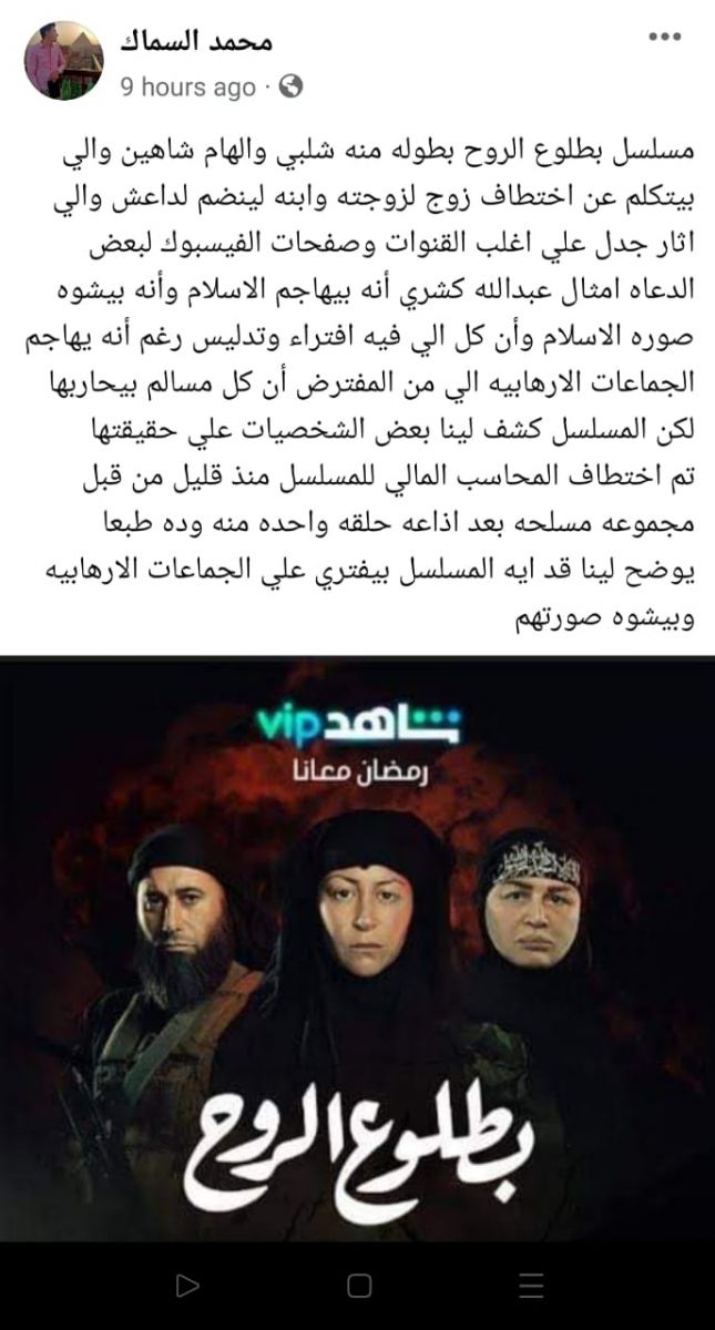 وفي هذا الصدد، عبر محمد السماك، أحد رواد السوشيال ميديا عبر صفحته على الفيس بوك، عن اشادته بعرض المسلسل، قائلا " المسلسل كشف لينا بعض الشخصيات علي حقيقتها"، مشيرًا إلى واقعة اختطاف المحاسب المالي المسلسل منذ قليل من قبل مجموعه مسلحه بعد إذاعه حلقه واحده منه.