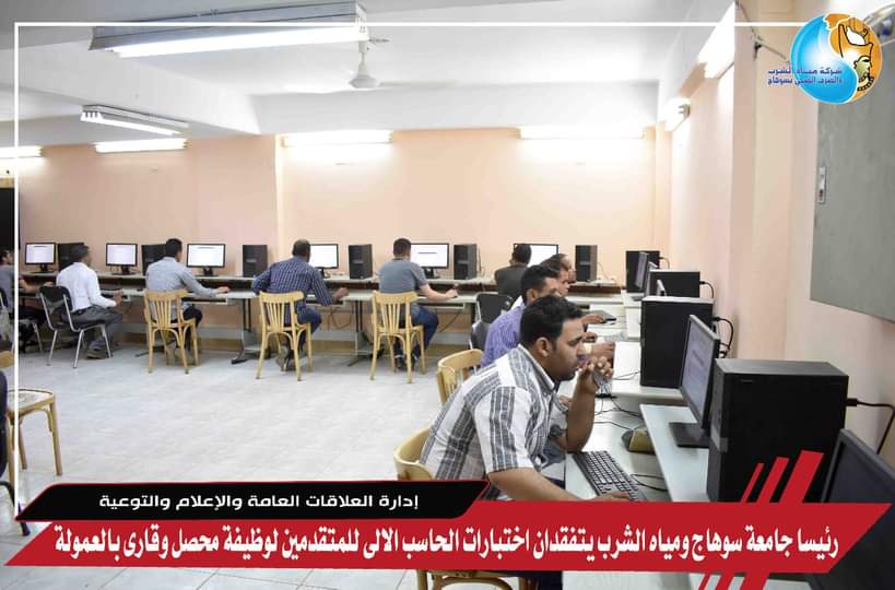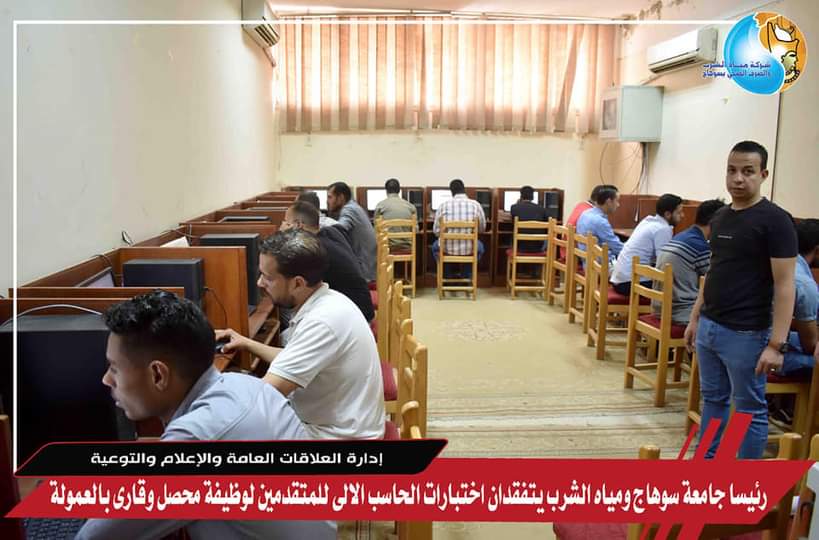 تفقد الدكتور مصطفى عبد الخالق رئيس جامعة سوهاج والمهندس محمد صلاح الدين عبد الغفار رئيس مجلس إدارة شركة مياه الشرب والصرف الصحى بسوهاج والعضو المنتدب لجان اختبارات الحاسب الآلي التى تجريها جامعة سوهاج للمتقدمين لوظيفة محصل وقارئ بالعمولة وذلك يومى 16 و 17 ابريل الجارى.