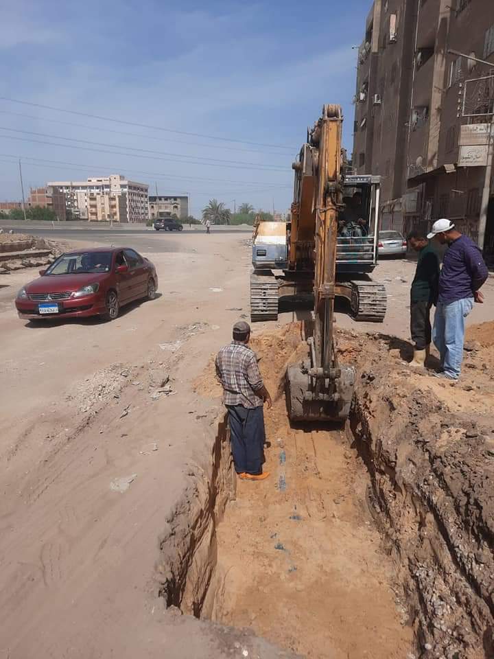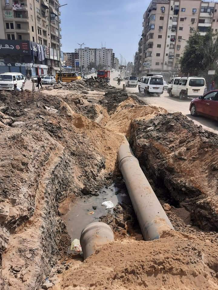 وإستكمال ربط الشوارع الجانبية على خطوط مياه الشرب الجديدة المنفذه بالشارع ، كما جاري نقل حنفيات الحريق من على خطوط مياه الشرب القديمة إلى الخطوط الجديدة.