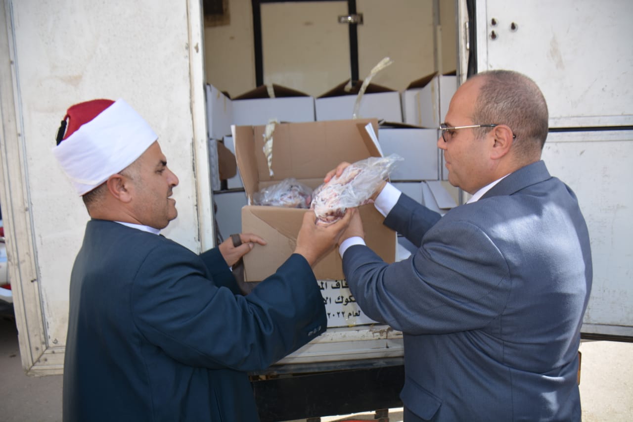 وثمن " مختار " جهود وزارة الأوقاف والتضامن الاجتماعي من خلال توزيع صكوك الطعام سواء كانت لحوم أو سلع غذائية متنوعه علي الأسر الأولي بالرعاية علي مستوي الجمهورية .