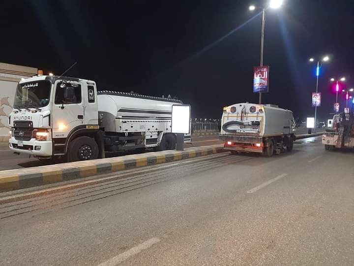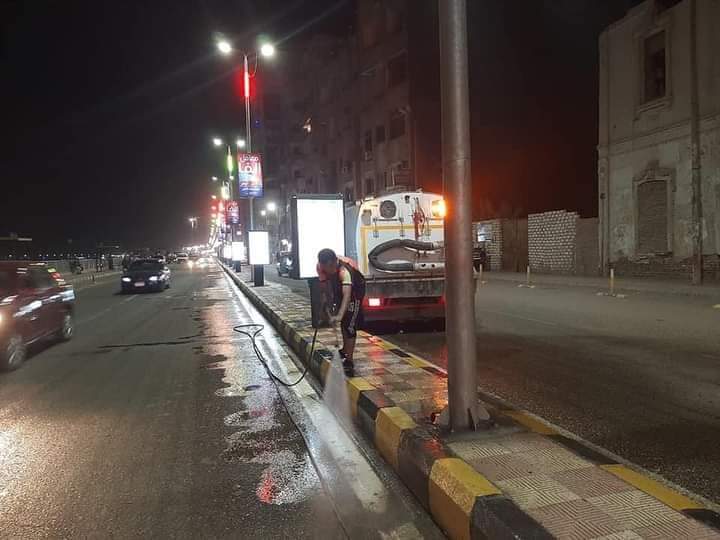حملة للنظافة وغسيل الأرصفة وصيانة الإنارة بكورنيش النيل الغربي بحي شرق سوهاج