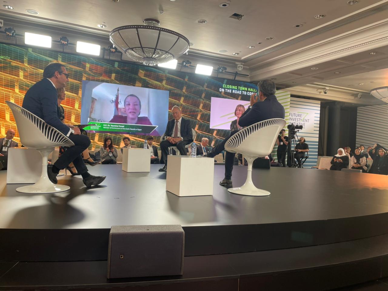 شاركت الدكتورة ياسمين فؤاد وزيرة البيئة و المبعوث الوزاري لمؤتمر المناخ القادم COP27 عبر تقنية الفيديو كونفرانس فى جلسة الطريق إلى COP27 على هامش فعاليات مؤتمر معهد مبادرة الاستثمار المستقبلي بعاصمة المملكة المتحدة لندن، بمشاركة ماتيو رينزي رئيس وزراء ايطاليا الأسبق، والسفير اللورد جيمي جريفستون وزير الاستثمار بالمملكة المتحدة.