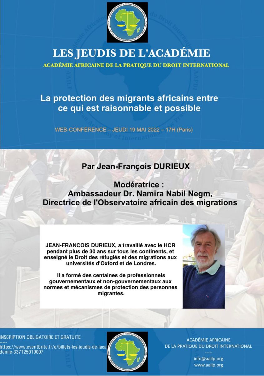 أدارت السفيرة الدكتورة نميرة نجم، مديرة المرصد الأفريقي للهجرة بالمغرب، ندوة أعدتها الأكاديمية الافريقية لممارسة القانون الدولى بباريس