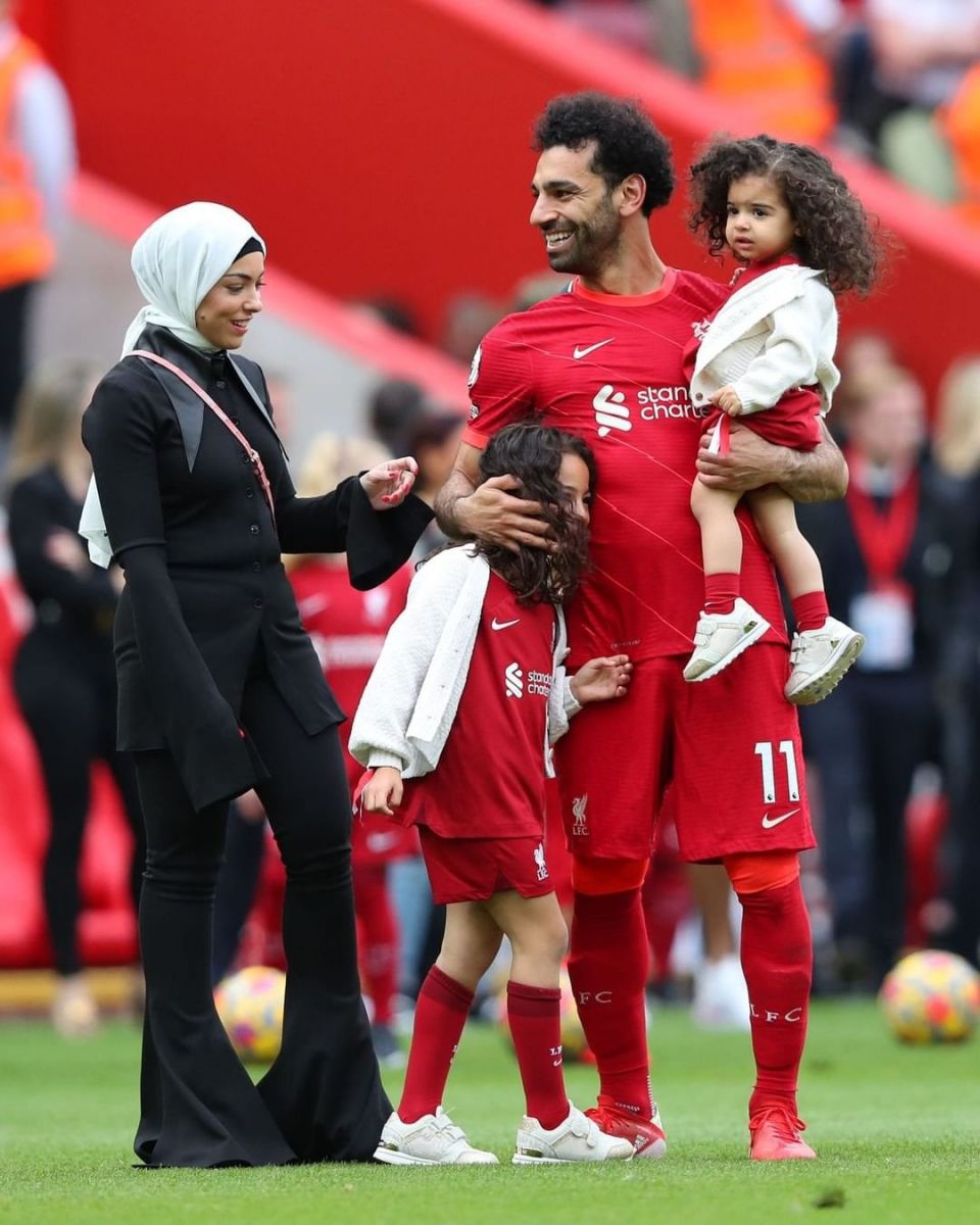 وفي مقدمة هؤلاء اللاعبين جاء النجم محمد صلاح الذي اعتاد منذ احترافه بالدوري الإنجليزي على الاحتفال مع زوجته وابنتيه مكة وكيان بنهاية الموسم الرياضي، والتقاط الصور التذكارية معهم، وهذا العام احتفل معهم بحصوله على لقب هداف الدوري الإنجليزي وأفضل صانع ألعاب، وذلك في مباراة فريقه أمام ولفرهامبتون، والتي فاز بها الريدز بثلاثة أهداف لهدف.