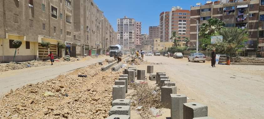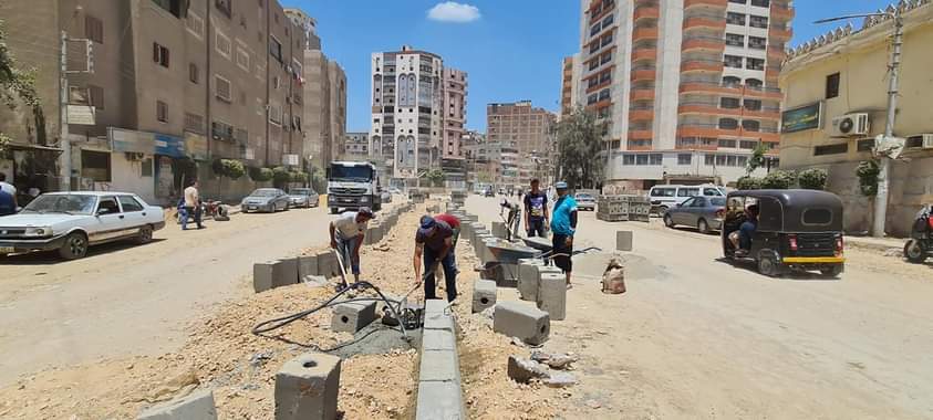 حيث تم متابعة معدلات الإنجاز بأعمال تجهيز شارع عبد السلام عارف والعبور لأعمال الرصف حيث تم متابعة وضع طبقة السن ٦ و ضبط مناسيب الشارع ، ووضع البردورات بمنتصف الطريق لتقسيم الشارع ، وتركيب الأرصفة على جانبى الطريق ، إلى جانب التأكد من اتمام أنشاء بلاعات تصريف مياة الأمطار على جانبى الطريق.